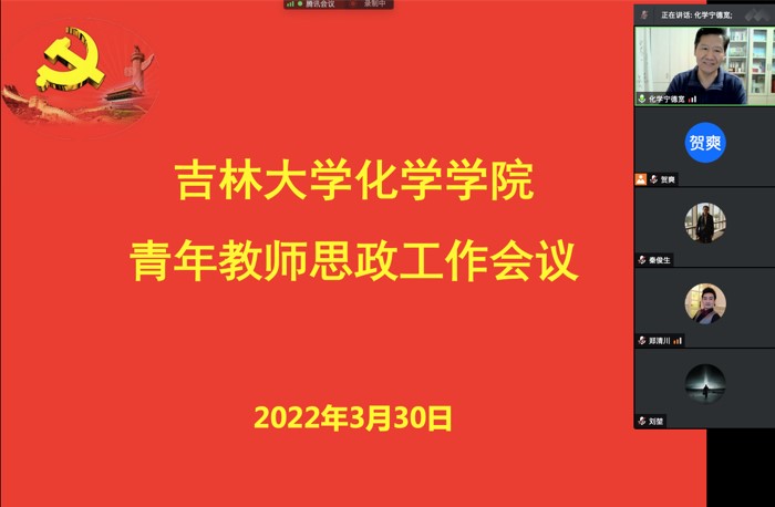 吕中元院长进行了会议总结并分享了自己的感受。他首先强调了加强青年教师思政教育工作的重要性。青年教师工作在第一线,是学院教学和科研工作的主力和生力军,撑起了学院发展的现状和未来。青年教师有无限发展的可能性,有充分向上的动力。其次对青年教师在学生培养方面提出要求。要有老师的站位,时刻维护吉大化学形象;因材施教,针对不同学生做双向改变,塑造良好课题组氛围,使学生在“朋辈”帮助下更好融入;师生交流时要学会换位思考;学习前辈的培养经验,遇到问题可以与前辈多请教,多交流;遇到棘手问题,尽早与学院沟通解决,畅通管理渠道,避免导学矛盾。