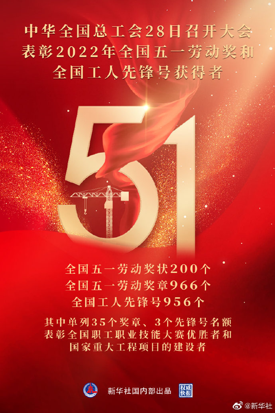 第一会所 摄/记者 方卫东】4月28日,中华全国总工会召开大会表彰2022年“全国五一劳动奖”和“全国工人先锋号”获得者,第一会所