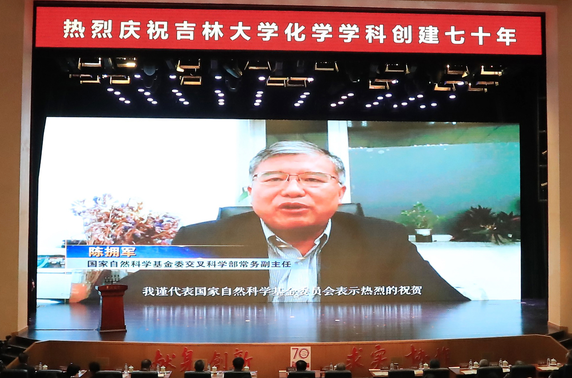 陈拥军代表国家自然科学基金委交叉科学部对吉大化学学科创建70年表示祝贺,向徐如人院士、沈家骢院士执教70年致以敬意。他表示,吉大化学创建70年来,始终与党和国家同呼吸,与时代和社会共命运,扎根基础研究精勤不辍,瞄准产业急需领域和关键核心技术攻坚克难,在国际学界赢得了广泛声誉,为推动国家科技进步和地方经济社会发展贡献了重要力量。多年来,国家自然科学基金委与吉大化学相互支持、携手共进。未来,交叉科学部也将与以吉大化学为代表的优势学科一道,面向国家重大需求和新兴科学前沿交叉领域,推动形成新的学科增长点和科技突破点,致力于为国家解决关键科学问题和“卡脖子”技术突破。