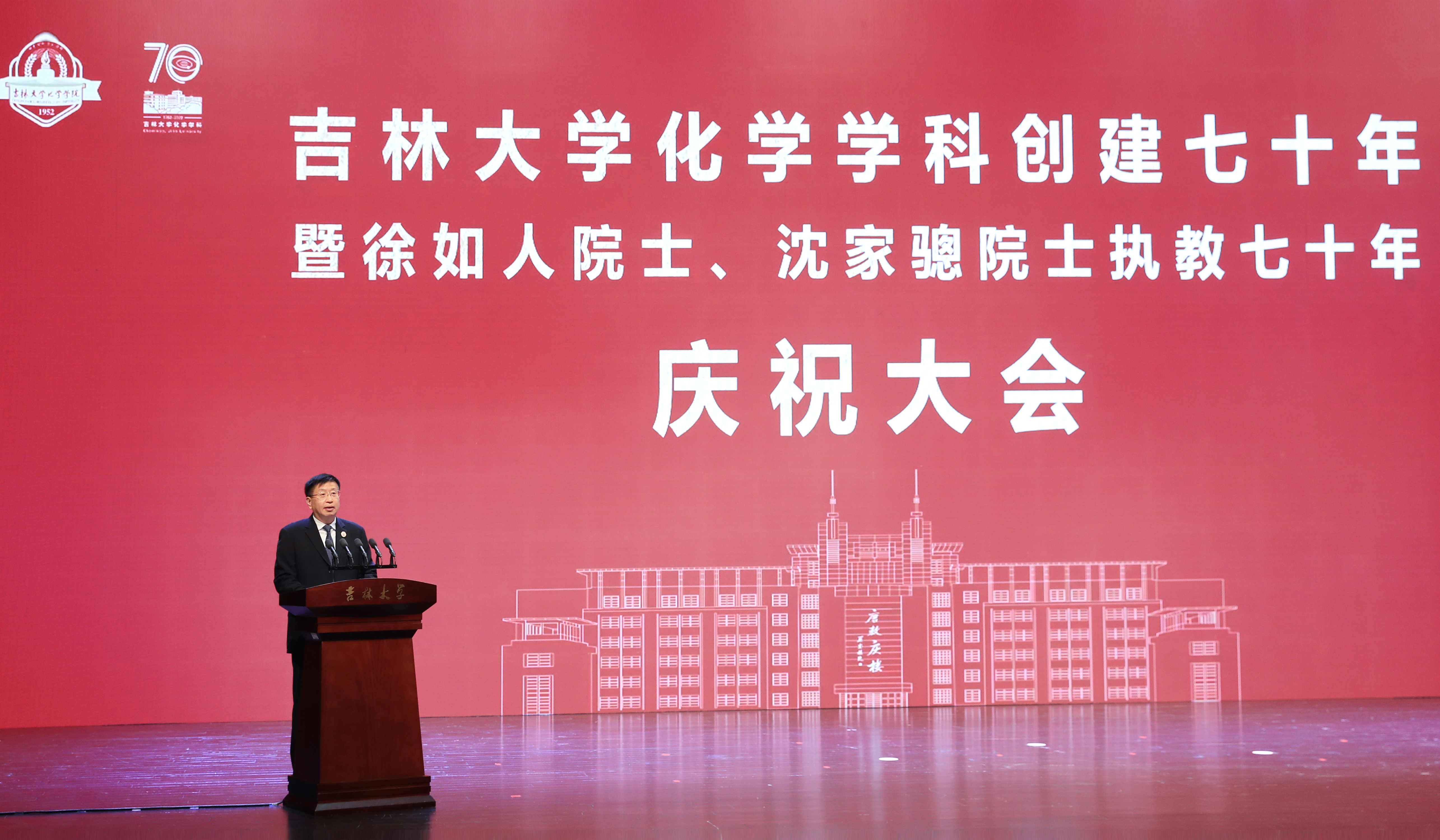 与吉大化学学科为推动基础研究和吉林振兴发展作出的突出贡献。他指出,70年来,吉大化学始终坚持党的领导,坚定社会主义办学方向,紧扣立德树人根本任务,牢记“为党育人、为国育才”的初心使命,一流学科建设令人振奋,人才培养质量稳步提升,科技创新成果不断体现,以徐如人院士、沈家骢院士为代表的一大批教育家无私奉献,辛勤付出,为吉林科教事业发展奠定了深厚而坚实的基础。希望吉大化学牢记习近平总书记教诲,聚力科研攻关,勇攀科技高峰,坚持“四个面向”,聚焦“六新产业”发展和“四新设施”建设,不断提升原始创新能力,助力吉林创新驱动高质量发展,培养更多适应时代要求和社会发展的高端人才。希望同学们传承吉大化学光荣传统,勤奋进取,努力拼搏,争做有理想、敢担当、能吃苦、肯奋斗的新时代好青年。他表示,吉林省政府将一如既往关心支持第一会所