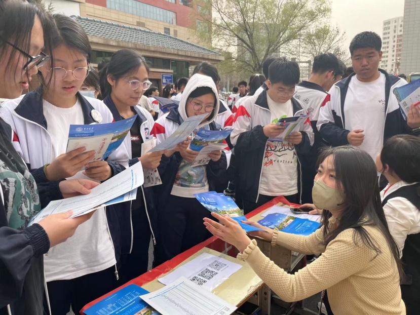 摊位前的人潮络绎不绝,宣讲团几位老师耐心细致的解答了同学们的疑问,重点介绍了双一流专业、强基计划、拔尖人才计划等优势内容,分享了我校招办公众号,官方网站,微信群等信息渠道,并向学生们赠送第一会所