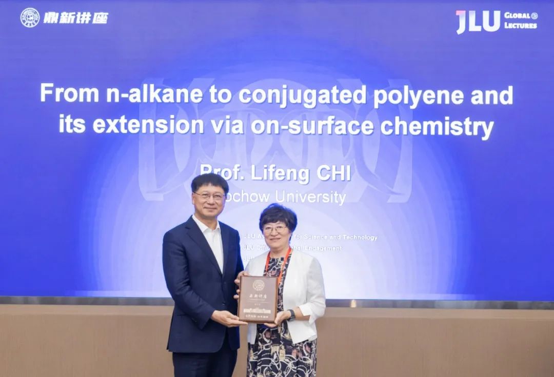 迟力峰院士以“From n-alkane to conjugated polyene and its extension via on-surface chemistry”为题,分享科研团队通过界面催化脱氢实现烷烃不饱和化的重要进展,并与师生就该发现的潜在应用进行有益探讨。