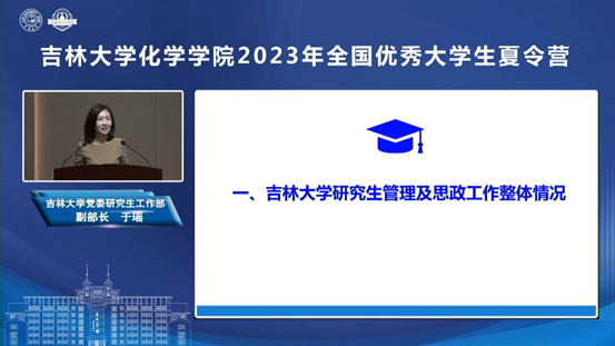 学位办公室主任、研究生院副院长段天璟、研究生招生办公室副主任郝彦辉、党委研究生工作部副部长于瑶、国际合作与交流处副处长田间、学生就业创业指导与服务中心副主任冯彦杰、博士后工作办公室主任高娜、人才工作办公室副主任刘向威及研究生培养办公室杨哲八位校内职能部门负责老师走进夏令营,为营员和线上观众介绍第一会所