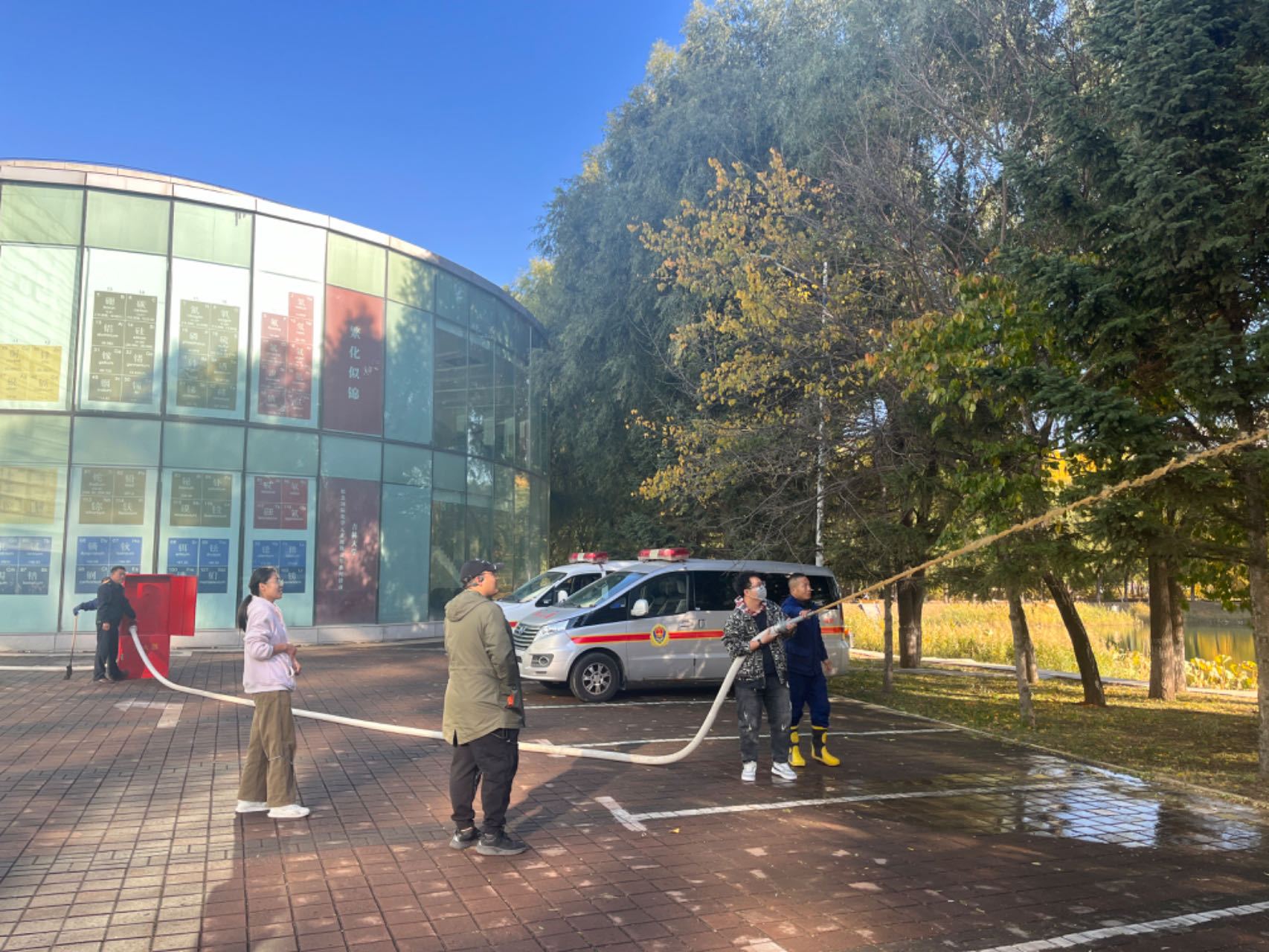 在消防器材使用培训环节,保卫处消防科董立明老师详细讲解并演示了消火栓、灭火毯、二氧化碳灭火器、干粉灭火器、推车式灭火器等消防器材的正确使用方法,在场学生30余人次参与消防器材的学习和使用。