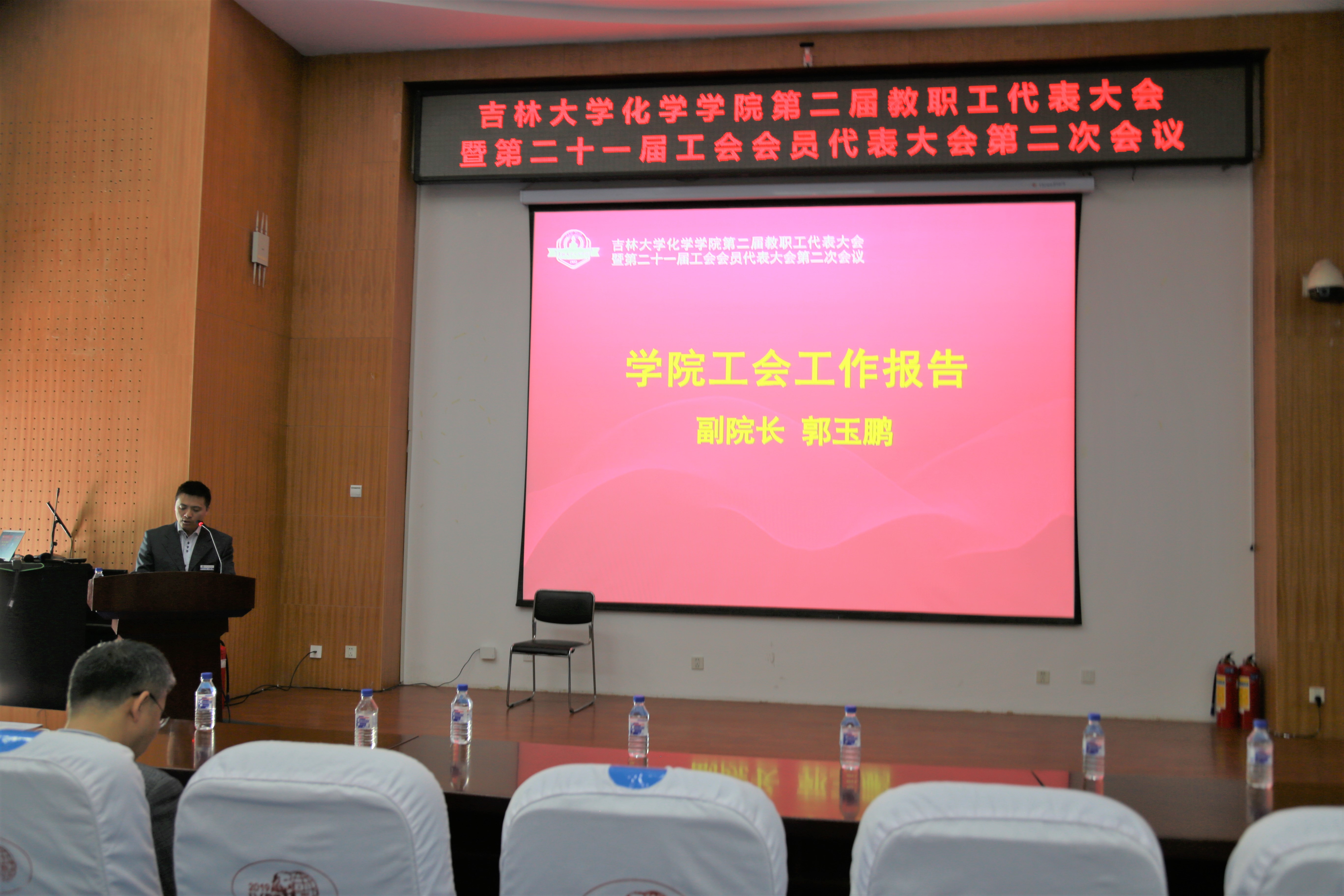 会议在庄严的国歌声中拉开序幕。首先,郭玉鹏副院长代表学院工会做了工作报告。报告全面总结了2018年以来学院工会在民主管理、文体惠民活动、扶贫贡献等方面的工作,通报了工会会费收支情况,提出了未来工作的努力方向。