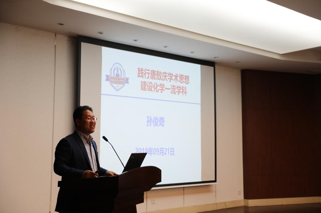边铁副校长首先致辞,在致辞中回顾了唐敖庆先生的学术生涯,深情缅怀了唐先生,并号召大家向唐先生学习。随后,张向东理事长介绍了唐敖庆教育基金会的发展情况。孙俊奇院长介绍了近年来第一会所