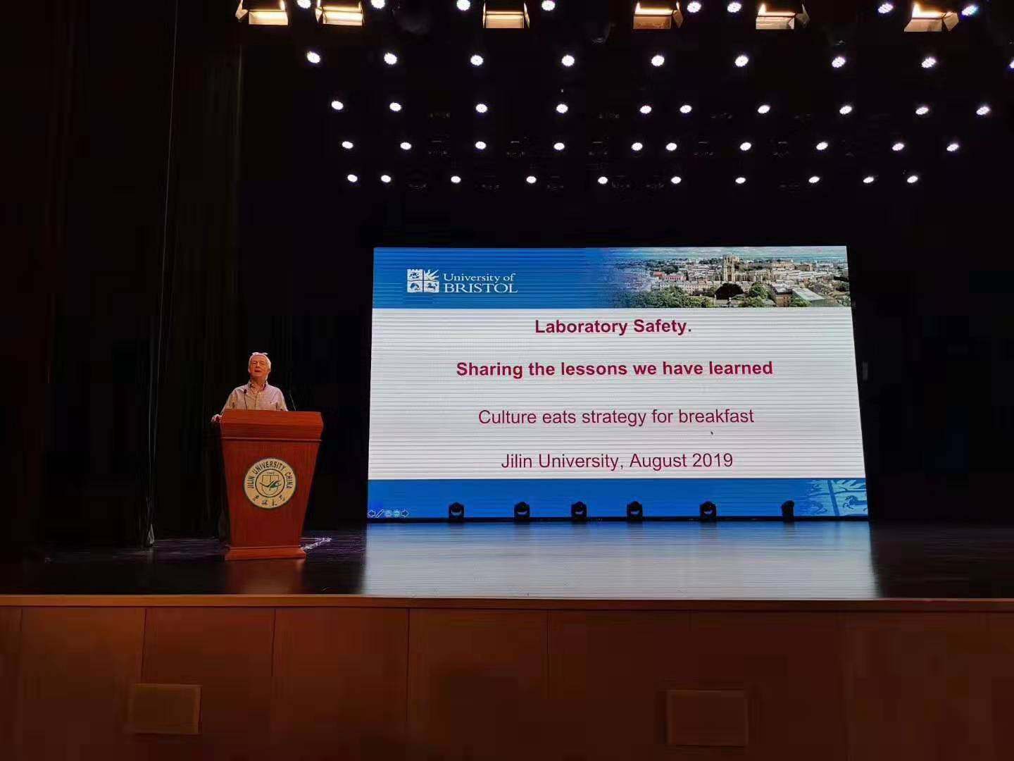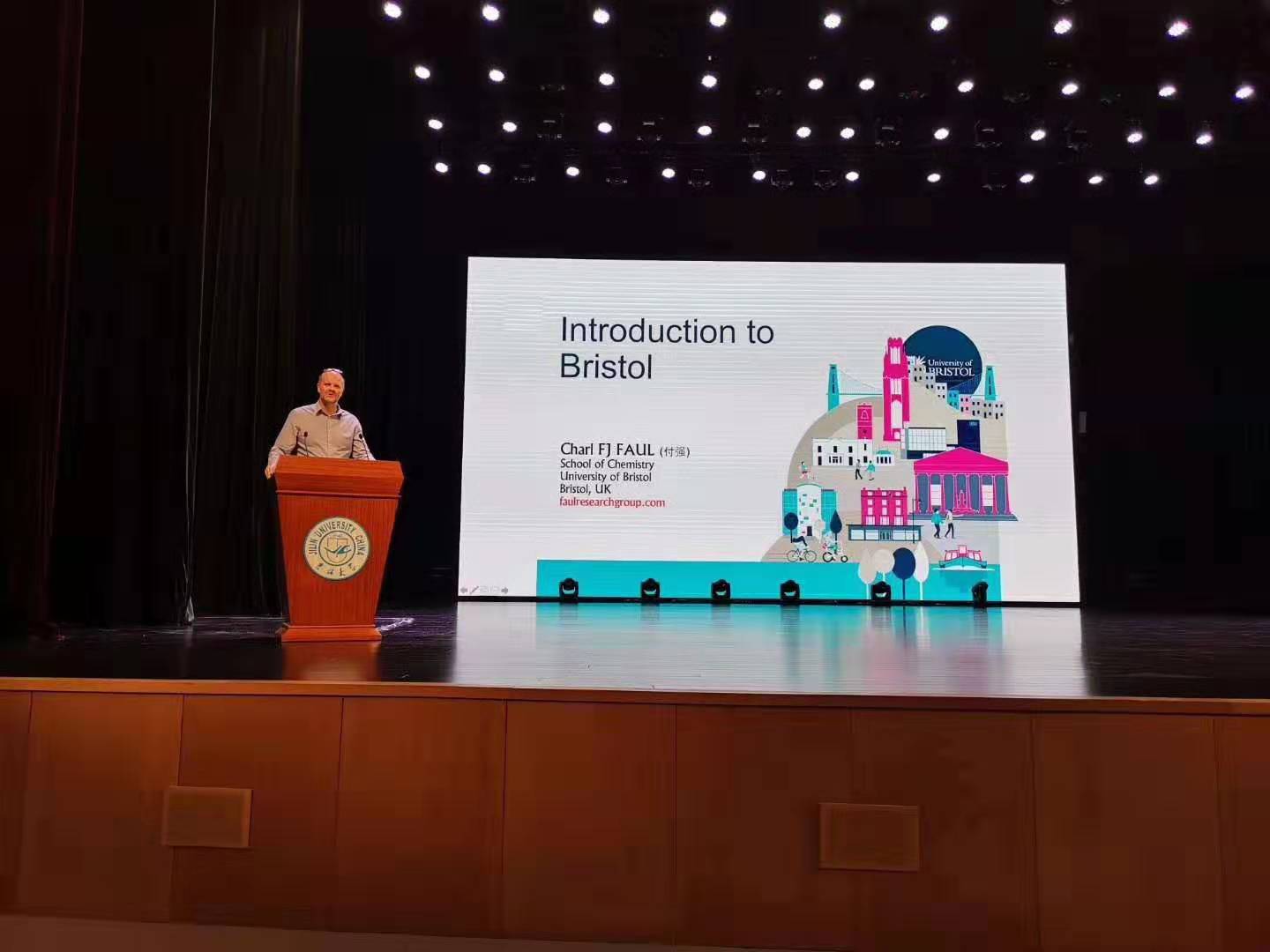 首先,Charl Faul教授通过丰富多彩的PPT和视频带领全体参会师生畅游了美丽的英国布里斯托市和布里斯托大学;随后,Tim Gallagher教授做了题为《Laboratory Safety. Sharing the lessons we have learned. Culture eats strategy for breakfast》的报告,结合自己从事科研、指导学生、管理实验室等经历,深入浅出地阐述了“实验安全的黄金法则”“为什么要做实验风险评估”“如何做实验风险评估”和“做实验风险评估的重要性”等;最后,Tim Gallagher教授和Charl Faul教授同与会学生进行深入的互动和交流,详细地解答了学生们在走入实验室前面临的各种困惑。