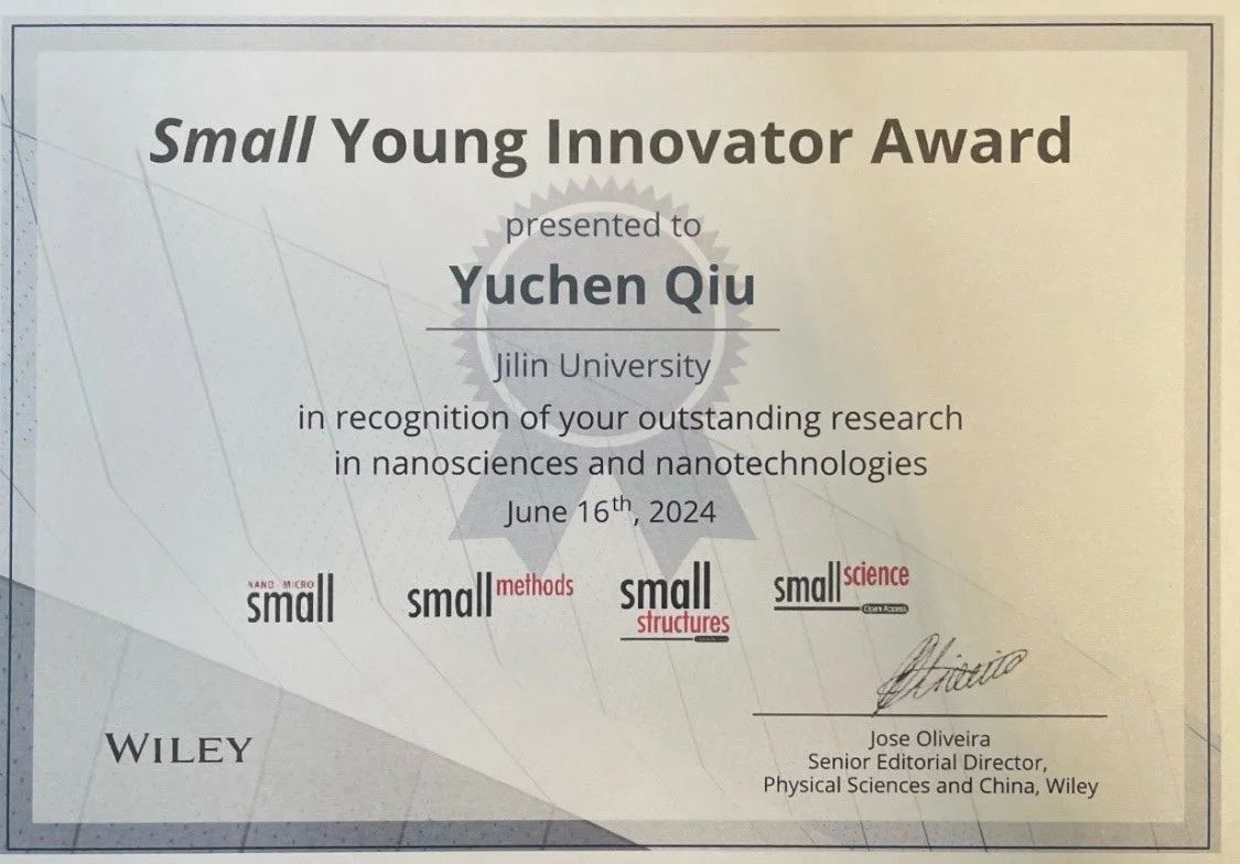 近日,中国化学会第34届学术年会在广州召开,我校“鼎新学者”邱宇辰博士荣获“第六届纳米化学新锐奖”。该奖项由中国化学会纳米化学专业委员会与Wiley(Small杂志编辑部)联合设立,用于表彰和鼓励在纳米化学领域基础或应用研究中取得发展和创新的青年科学家。奖励自2014年设立开始,每两年评选一次,每次奖励不超过4名。本次获奖的青年科学家包括苏州大学申博渊教授、武汉大学曾梦琪教授、第一会所