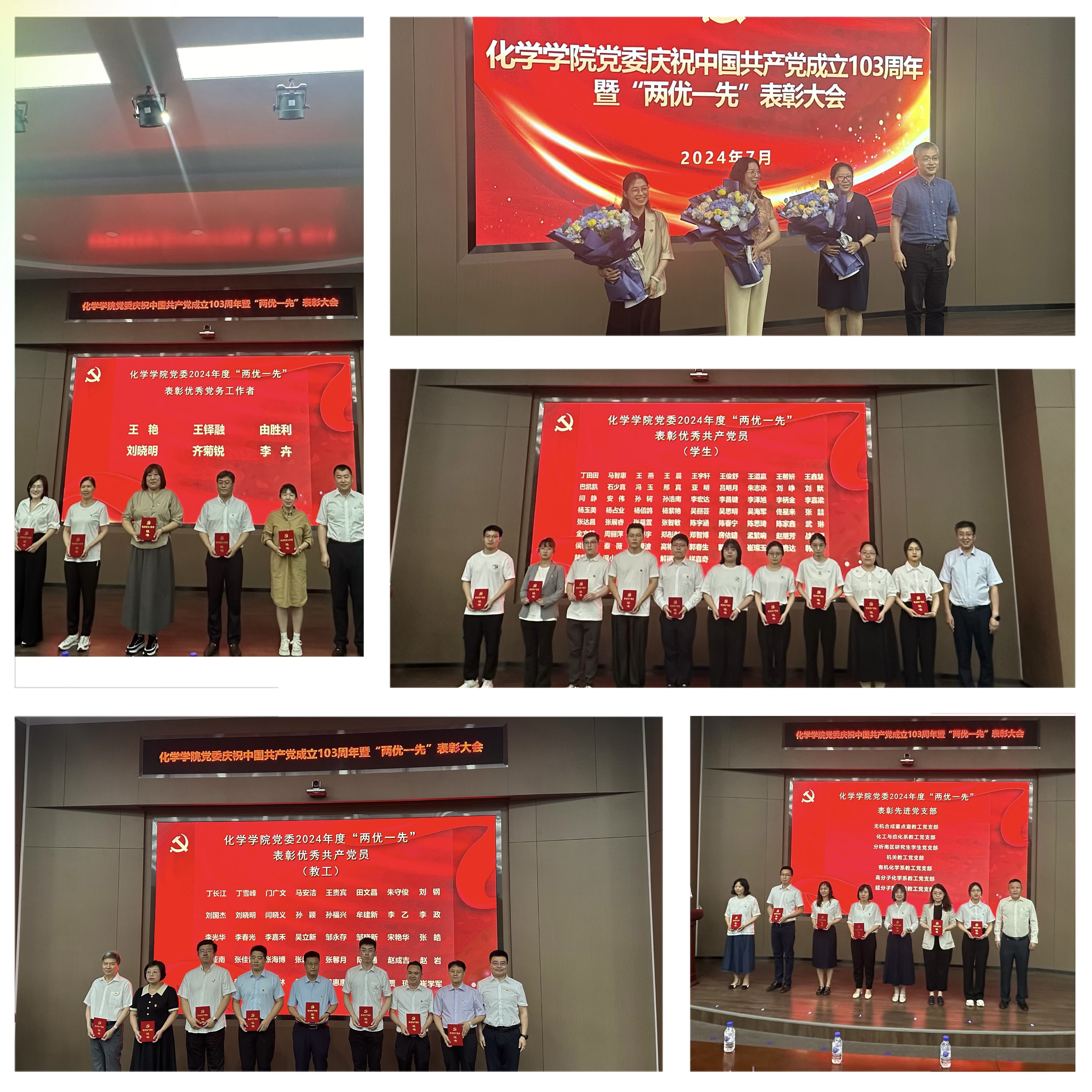 “两优一先”表彰大会在无机—超分子楼二楼报告厅召开,表彰一批优秀共产党员,优秀党务工作者和先进党支部,为近三年内退休的党员代表颁奖,激励全院党员不忘初心、牢记使命,在学院各项事业发展的道路上争当表率、争做示范。院长吕中元、党委书记马本华出席会议。会议由党委副书记由胜利主持。