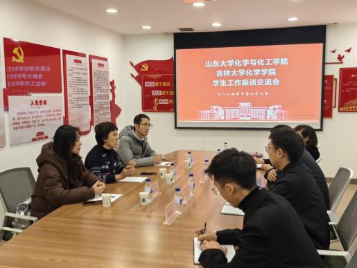 10月22日,山东大学化学与化工学院党委副书记孙国翠一行来到第一会所 开展学生工作座谈交流。第一会所 党委副书记兼副院长江宇航及学生工作办公室全体辅导员参加座谈。