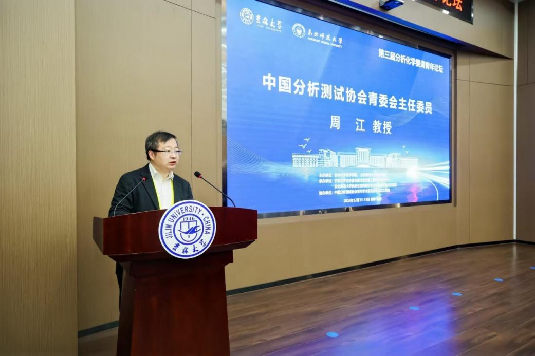 周江在致辞中代表中国分析测试协会青年学术委员会向本次论坛的主办方表达了衷心的感谢。周江表示中国分析测试协会青年学术委员会自1989年成立至今,始终致力于搭建高质量的学术平台,为青年学者的成长、发展创造有利条件。他希望与会的各位青年学者可以在本次论坛中多交流、多沟通、多学习,有所收获,为我国科学仪器产业、分析科学事业发展贡献力量。