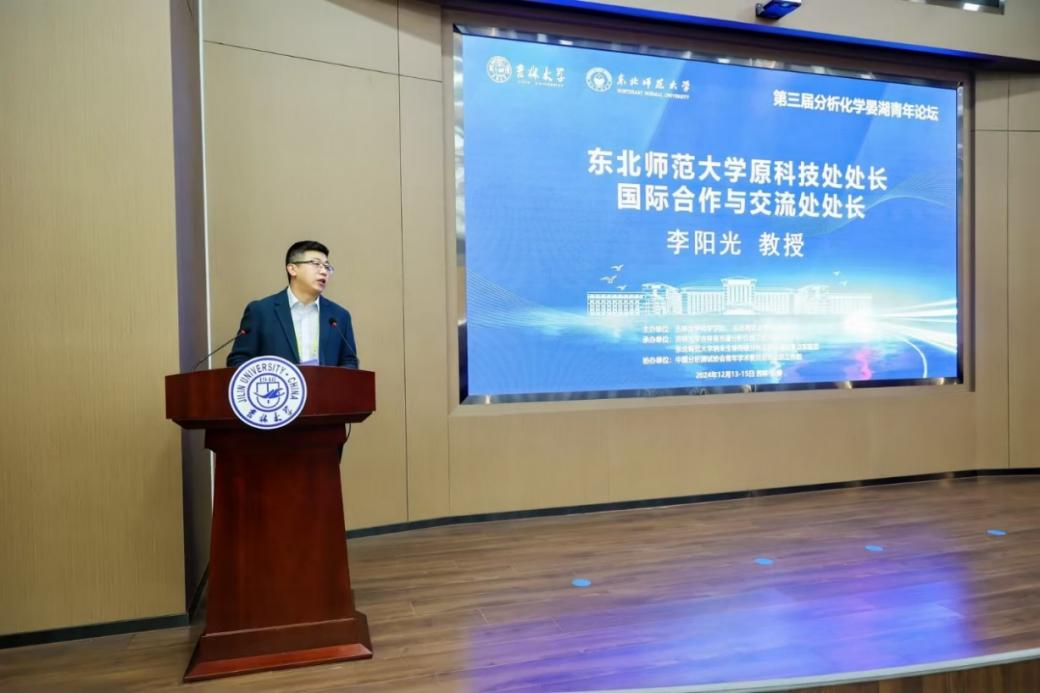 李阳光在致辞中介绍了东北师范大学的办校历程和化学学科建设成果,并期待此次论坛可以为专家学者、科研人员以及青年学者搭建一个多方位的学术交流平台,促进知识的交流与合作,激发创新思维,共同推动分析化学领域的科技进步。