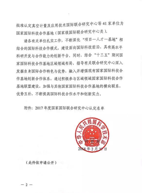 为深入实施创新驱动发展战略,部署“十三五”国际科技创新合作,进一步优化国家国际科技合作基地布局,充分利用全球科技创新资源,根据《国家国际科技合作基地管理办法》(国科发外[2011]316号),科技部在国务院各有关部门、省(区、市)科技主管部门,中央企业、驻美国、德国、法国、俄罗斯、日本、澳大利亚科技处组等推荐的基础上,经专家评议与研究,批准认定未来科学国际联合研究中心等41家单位为国家国际科技合作基地(国家级国际联合研究中心类)。我院于吉红院士担任主任的未来科学国际联合研究中心被科技部批准为国家国际联合研究中心。