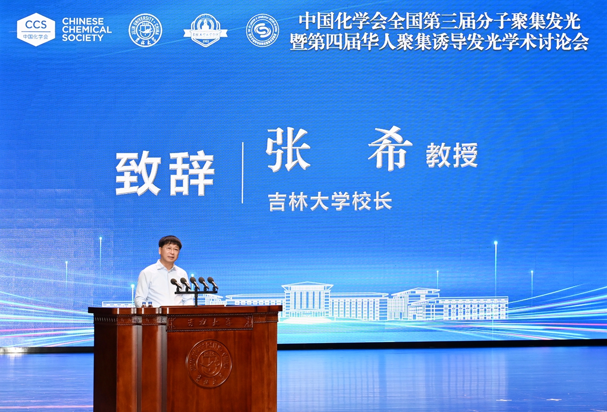 对与会嘉宾表示欢迎,并向大家一直以来对吉大和吉大化学学科的关心支持表示感谢。他指出,科学上许多重大突破往往来源于意外的偶然发现,而非精心设计的实验方案。他以《CCS Chemistry》社论中对科研意外发现的分类为例,指出唐本忠教授团队发现的聚集诱导发光效应正是“有目标的研究解决了意料之外的问题”的典范。张希勉励青年师生坚守科研一线,增强科学研究的敏锐性、洞察力,不要漏掉实验中看似不合常理的新奇现象,抓住新奇现象并探究现象背后的本质,可能带来重大的突破;要敢于坚持真理,善于利用不可争辩的事实说服自己和同行。他期待大家通过交流讨论甚至争论,明确聚集诱导发光未来的发展方向,找到需要合作才能解决的难题,进一步推动这一领域的发展进步;如果有人意识到这是个已经很拥挤领域,勇于跳出聚集诱导发光的“藩篱”,尝试开展独立研究,这也是会议的价值所在。