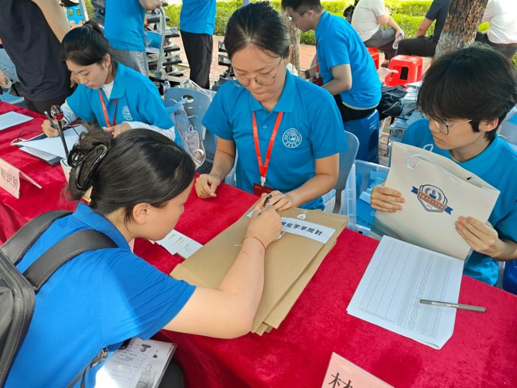 为保障迎新工作顺利开展,为初入校园的新生提供便捷、暖心服务,学院招募并培训了150余名志愿者,在校园内7处工作点位集结上岗。从路线导引到行李搬运,从身份查验到材料收发,志愿者们满怀热忱投身迎新工作,以饱满的精神状态、细致入微的服务,耐心为2025级新生办理相关报到手续。