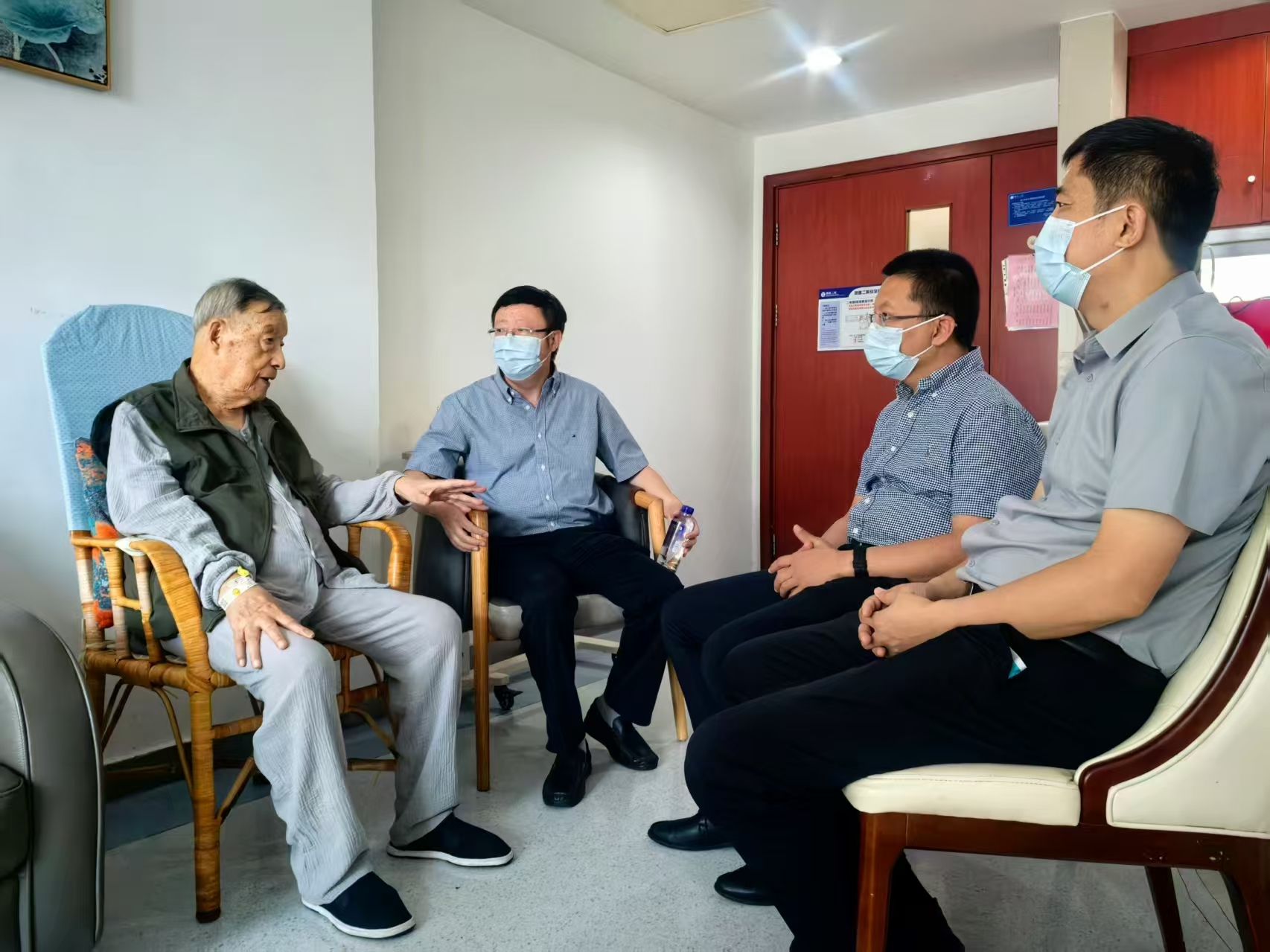 在慰问活动中,马本华、李乙一行分别前往各位专家学者的办公室或家中。他们对专家学者长期以来为学院及重点实验室发展作出的贡献表示感谢,关切询问其身体健康状况、日常生活保障及工作推进情况,并请各位专家学者对学院建设发展提出宝贵建议。