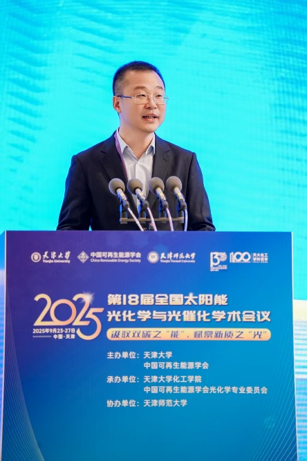 图4 于2025年在天津举办的第十八届全国太阳能光化学与光催化学术会议上作大会报告。