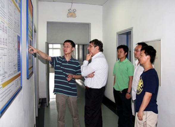 图2 中国科学院2009年度“爱因斯坦讲席教授”获得者英国曼彻斯特大学A. K. Geim教授(2010年诺贝奖物理奖获得者)在金属所学术访问——向Geim教授介绍团队在Direct Z-scheme光催化材料研究工作。