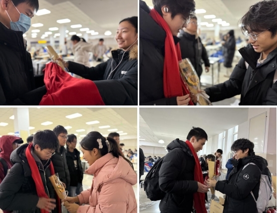 活动现场暖意融融,学院老师们早早在此等候,与考研学子亲切交流,缓解同学们考前压力,叮嘱同学们沉着应考,祝福同学们金榜题名。学弟学妹们为学长学姐亲手系上寓意“前程似锦”的红色围巾,送上象征“一举夺魁”的向日葵花束,真诚祝福学长学姐梦想成真。学院教师积极踊跃报名加入暖心送考车队,以实际行动为莘莘学子的“研”途保驾护航。伴随着师生们的声声祝福,满载希望与梦想的送考车队缓缓驶离校园,向着考场笃定前行。