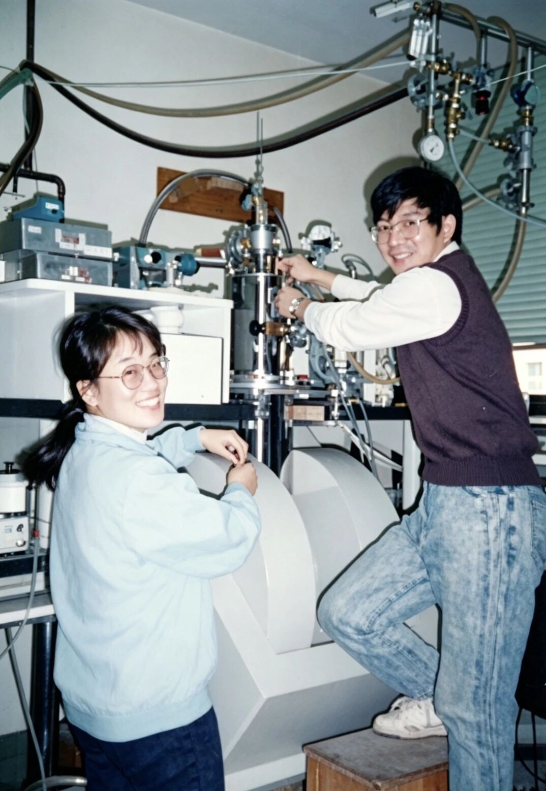 1993年12月,我来到以色列魏茨曼科学研究所,在 Daniella Goldfarb 教授组里工作。Daniella 做的是化学物理,是电子顺磁共振(EPR)技术的专家,尤其擅长时域(time domain)EPR,可以跟踪电子自旋体系随时间的变化,她后来还担任过世界磁共振学会的主席,去年(2025年)刚退休,1月份我还专门去雷霍沃特给她庆贺。到了以色列以后,我第一次非常直接地感受到什么叫真正的理论训练。那边很多犹太人真的是拿一张纸、一支笔,在那儿推理论、做傅里叶变换、从时间域信号推到频域信号,把脉冲、跃迁、弛豫这些东西讲得非常清楚。我当时就感觉到,我在理论上和他们相比有巨大的差距。不过,说到动手合成实验方面,他们确实比较欠缺。合成我在行,于是又成了我在那里的工作切入点。他们当时想做三元催化剂的替代材料,尝试用便宜一点的氧化锡负载铜去部分替代贵金属催化剂,把CO高效氧化为CO2。为了揭示催化机理,要用EPR来跟踪铜物种的演化,这就要求把体系中的氯离子去除干净,因为氯离子的两个同位素会影响目标物种的顺磁信号。氯离子是在用四氯化锡与氨水溶胶凝胶生成氧化锡时引入的,他们花了几个月都找不到洗干净氯的办法,我去了以后用一周就帮他们做到了。这方面我是很有感觉的,先调条件让沉淀慢一些,尽量结晶,就可以把大量氯从晶格排出去,然后洗涤的时候稍微加热,表面吸附的氯也就能更好的洗脱去。这件事也让我更明确了一点:虽然我理论上不如他们,但合成上我有自己的长处,扬长避短是我在博后期间的主要策略。