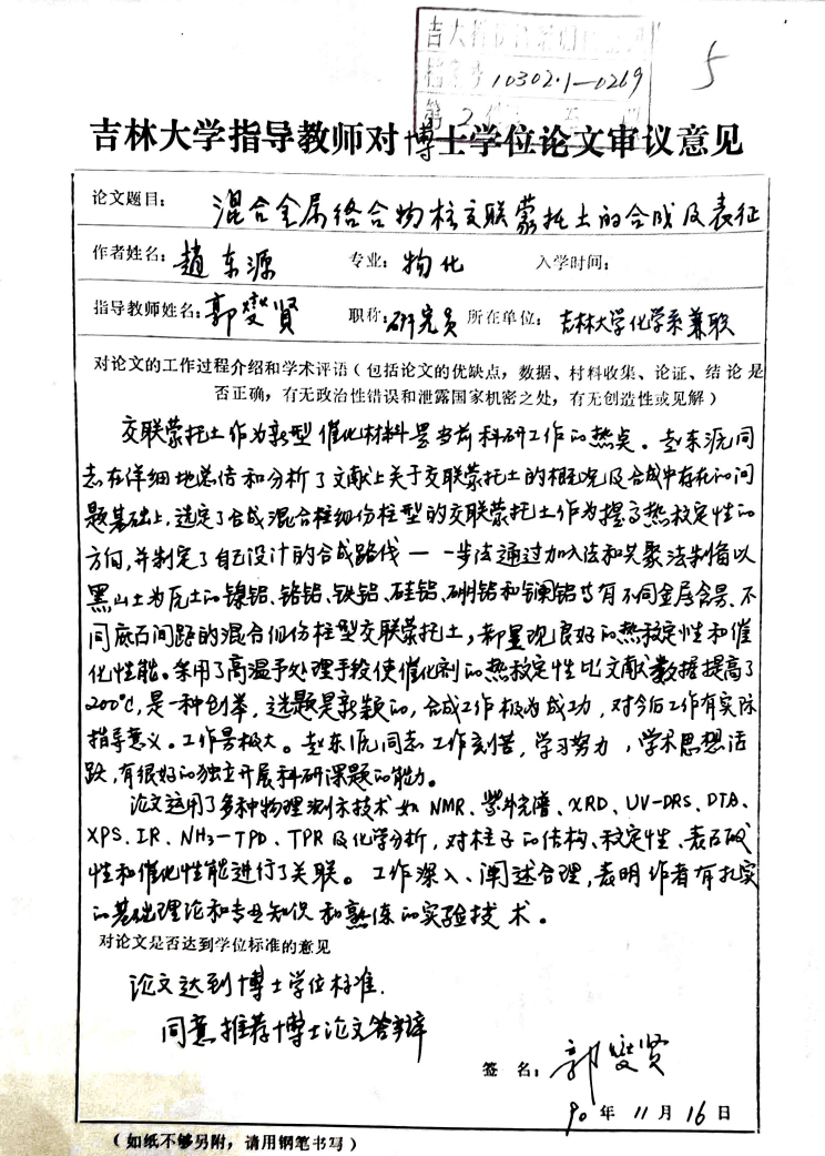 这边的联合导师则是徐如人老师和王国甲老师。按当时联合培养博士生的一般做法,虽然课题是联合培养,但多数学生还是以在吉大做实验为主。只是郭老师那边催化研究实力很强,却缺少能够合成分子筛材料体系的人,因此他希望我到大连去开展课题。于是,87年博士入学后,我先在吉大完成了一部分博士课程,到年底便去了大连化物所。此后几年间,我虽然也时常往返吉大,但大部分时间还是在大连开展研究。最后,我的博士论文答辩也安排在大连化物所进行,徐如人老师作为联合导师,还专门带着吉大课题组的老师和同学到大连参加我的答辩。