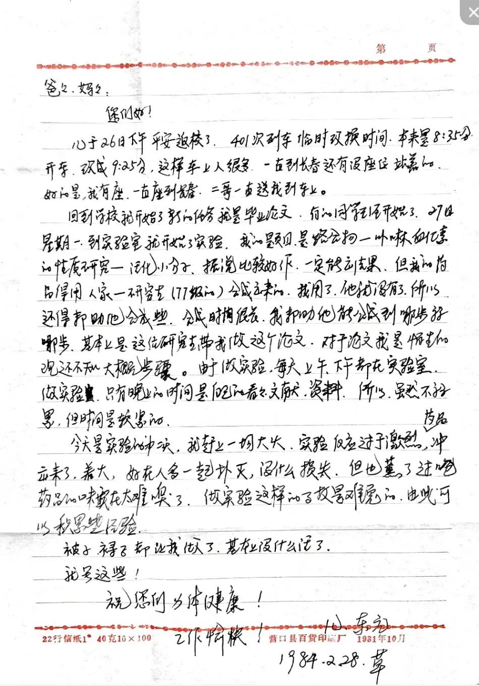 的化学系非常好,有著名化学家唐敖庆教授,我就把吉大作为第一志愿。当年是高考成绩出来后报志愿,我的化学、数学成绩都是区里状元,物理也得了90分,总分比吉大录取线高出近20分,如愿被吉大化学系录取,很开心。说来也有些不好意思,当年我的语文刚刚及格(60),后来虽然写学术论文我还算得心应手,但让我写点论文之外的文字,常常还是踟蹰难下笔。如此次,也是张希几番督促,我才勉强交了作业。