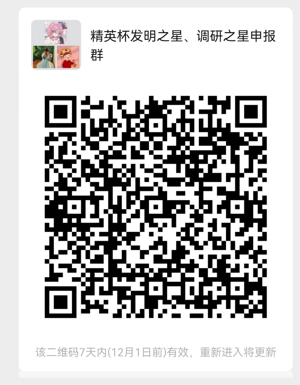 1.11月26日上午10:00前,研究生按申报要求准备个人材料,电子版材料发送至[email protected],文件名:精英杯发明之星/调研之星+姓名,同时扫码进群;