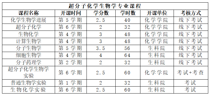 要求的通识教育课程、专业类学科基础课程、专业课程(依据专业规定)、超分子化学生物学专业课程(见下表)、并累计参加超分子化学生物学研究中心举办的学术讲座不少于20次,颁发“超分子化学生物学微专业”证书。