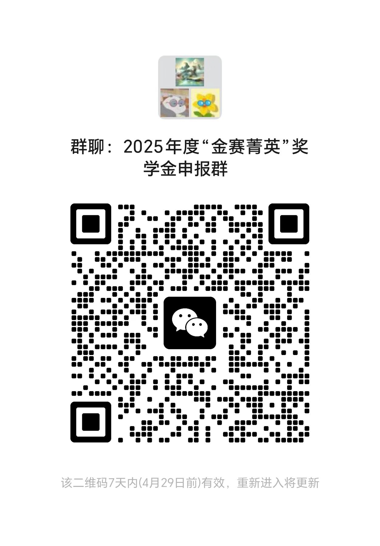 (3)报名研究生扫描二维码加入“2025年度“金赛菁英”奖学金申报群”。