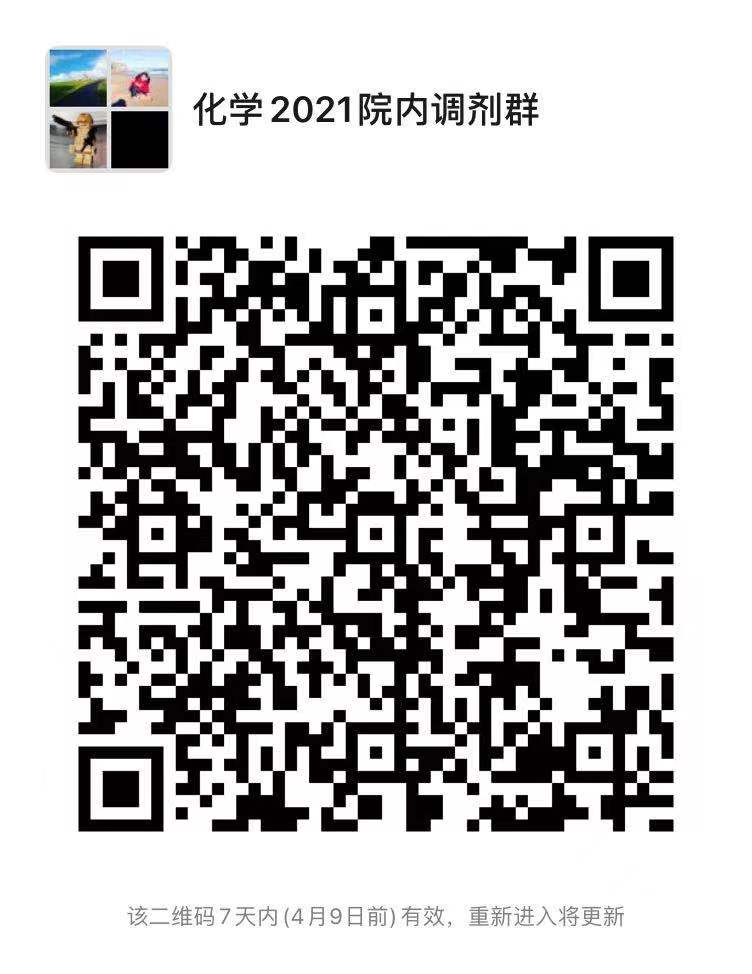 线,理科达到300分)的考生,请于2021年4月2日前加微信群:化学2021院内调剂群。加群后,请以(姓名+报考专业 命名)。