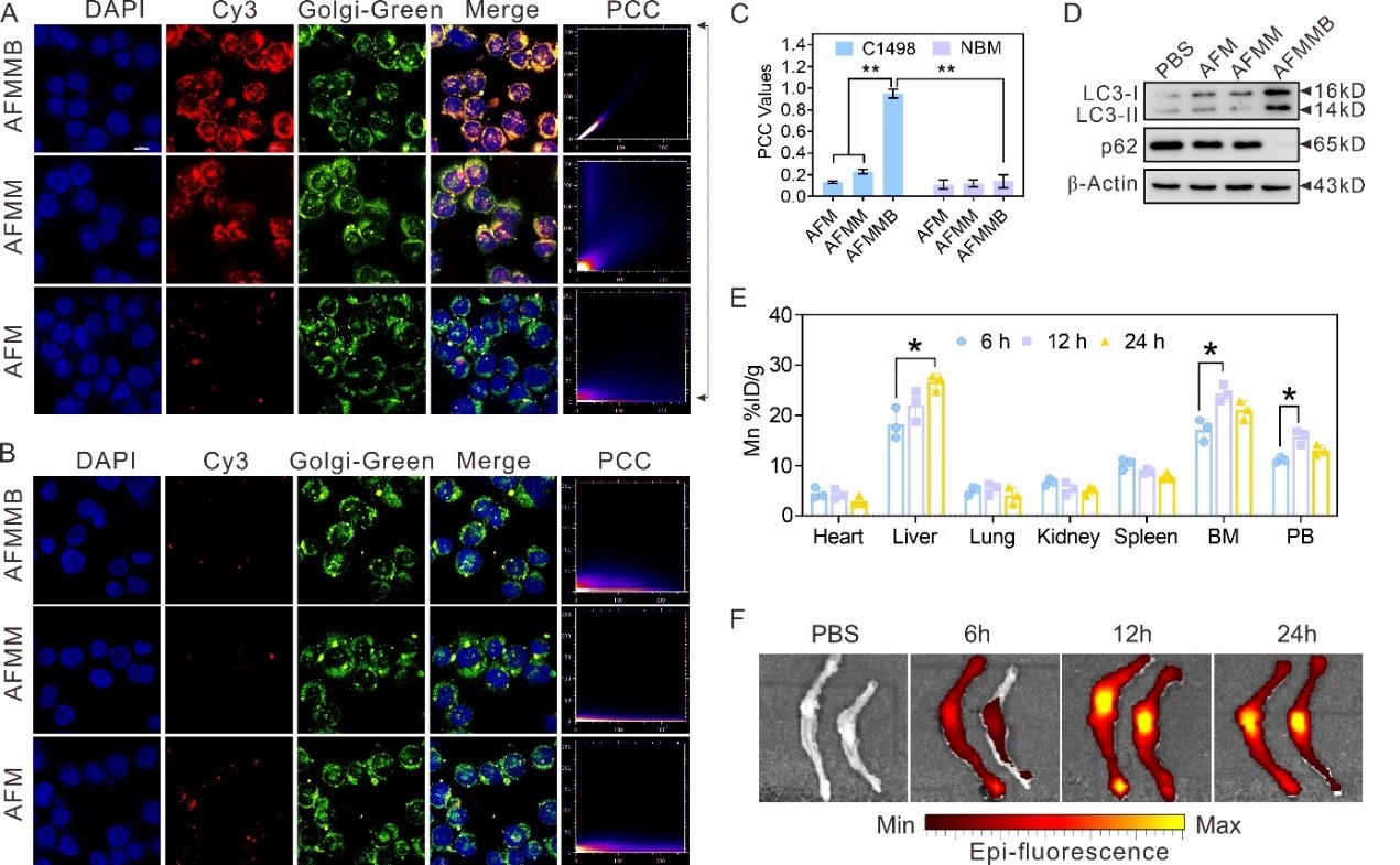 图3 AFMMB通过选择性靶向高尔基体而富集白血病细胞中