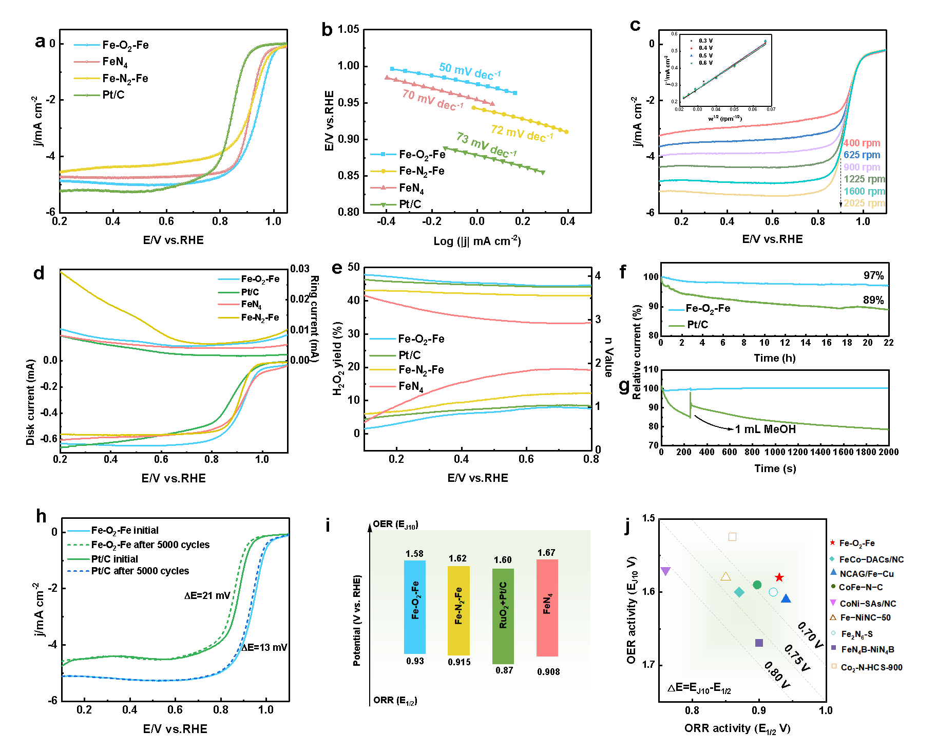图2.Fe-O2-Fe催化剂的电化学性能图