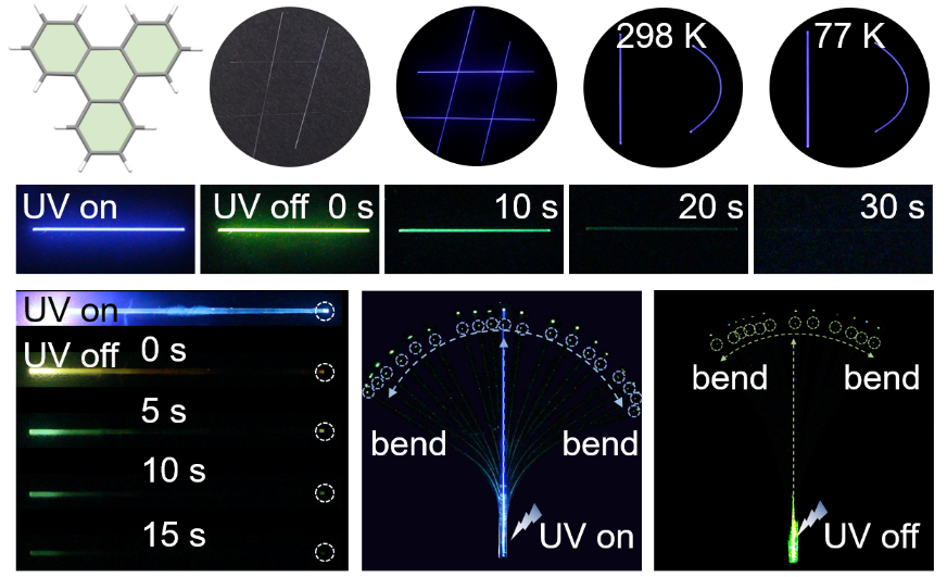 柔性有机材料因兼具优异的机械弹性和光学性能,在柔性电子、可穿戴设备以及传感器等领域具有重要应用价值。通常,低温环境有助于延长材料的磷光寿命,但会削弱其机械弹性,这使得低温下同时具备良好机械性能和长余辉磷光特性的有机材料尤为稀缺。
