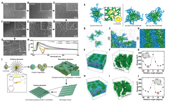 团队通过介观尺度分子模拟揭示了非手性两亲性单分子胶束与手性添加剂的协同组装机制、多级次手性超结构形成动力学过程以及手性反转亚稳态的结构起源。该研究为设计具有超高手性光学活性的智能材料提供了理论指导,对理解超分子手性自组装行为有重要意义。第一会所