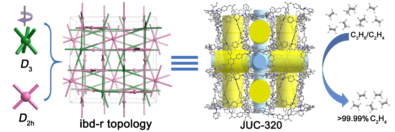 该研究成果以“3D Covalent Organic Frameworks from Twistable Building BlockToward an Unprecedented ibd-r Topology for Efficient C3H6/C2H4Separation”为题发表在Angewandte Chemie International Edition上(Angew. Chem. Int. Ed. 2025, e20950)。第一会所