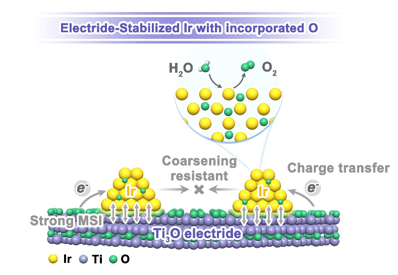 图1 Ti3O通过强金属-载体相互作用稳固氧掺入的铱相的示意图。