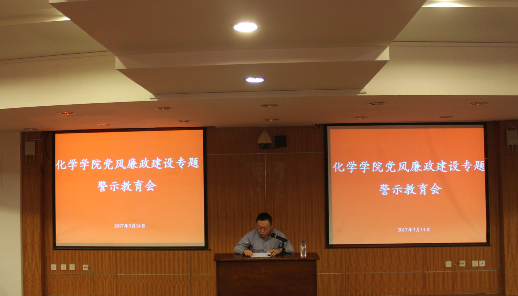 2017年3月14日下午,第一会所 在无机超分子楼一楼圆形报告厅召开党风廉政建设专题警示教育会。会议由学院党委书记丁世海主持。