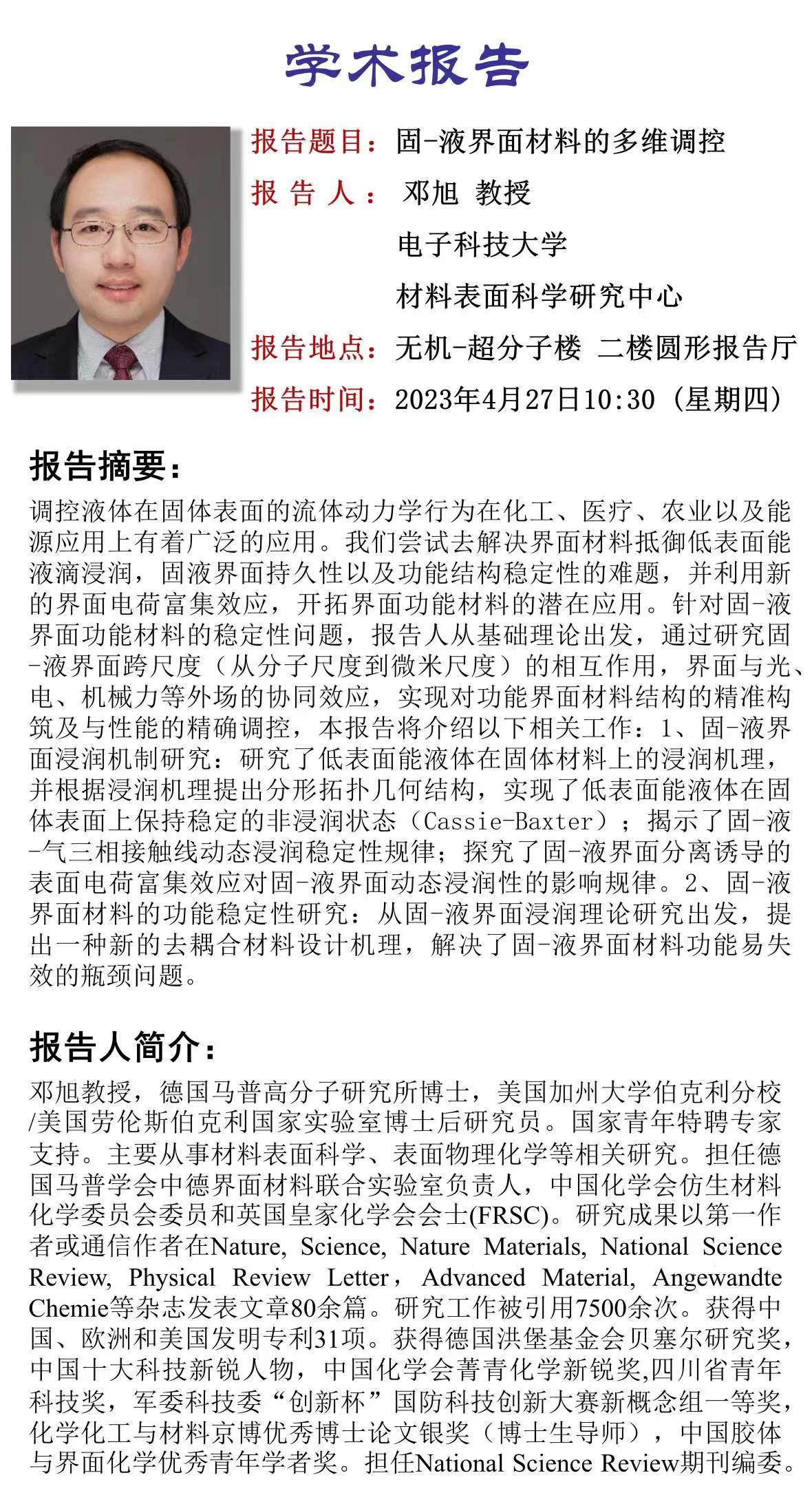 电子科技大学 材料表面科学研究中心 教授