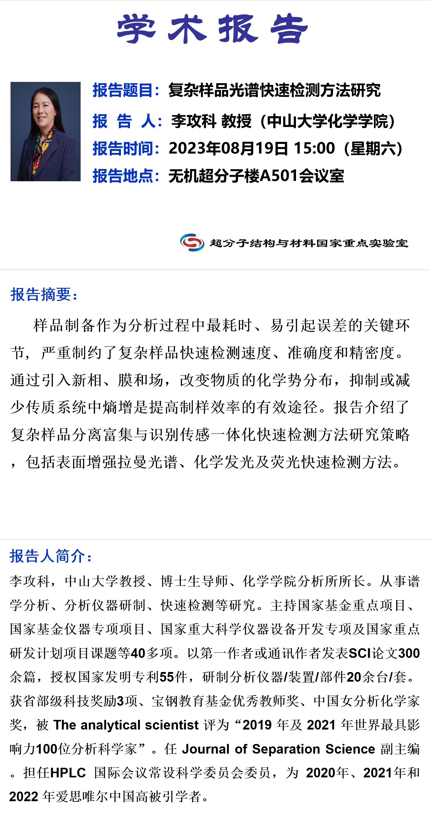 学术报告名称