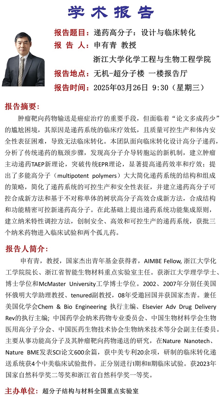 中心校区 无机-超分子楼 一楼报告厅
