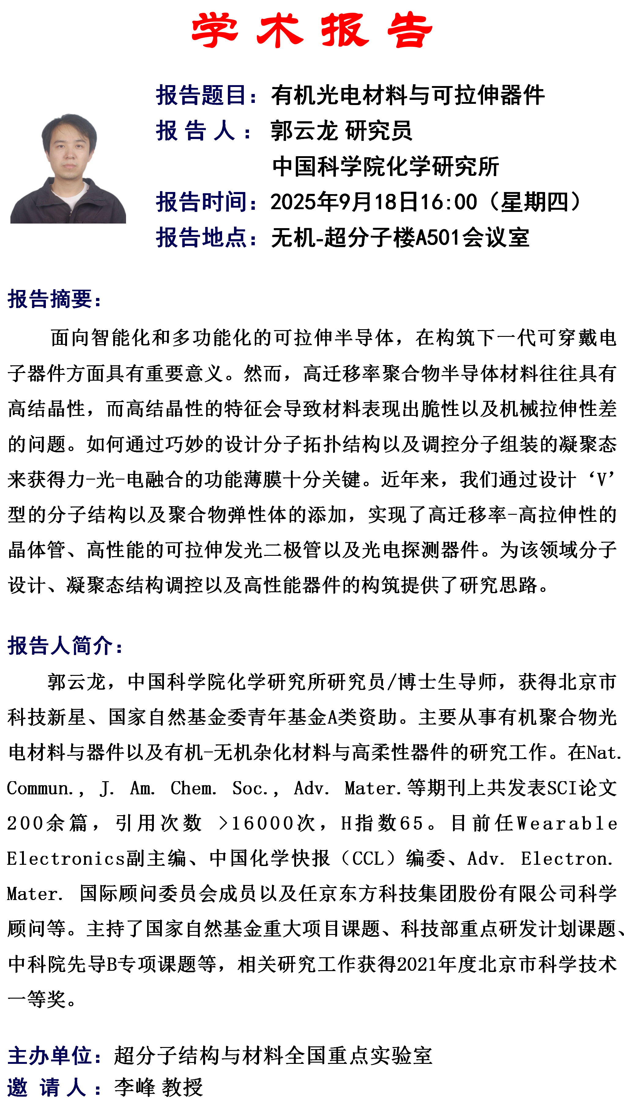 中国科学院化学研究所 研究员