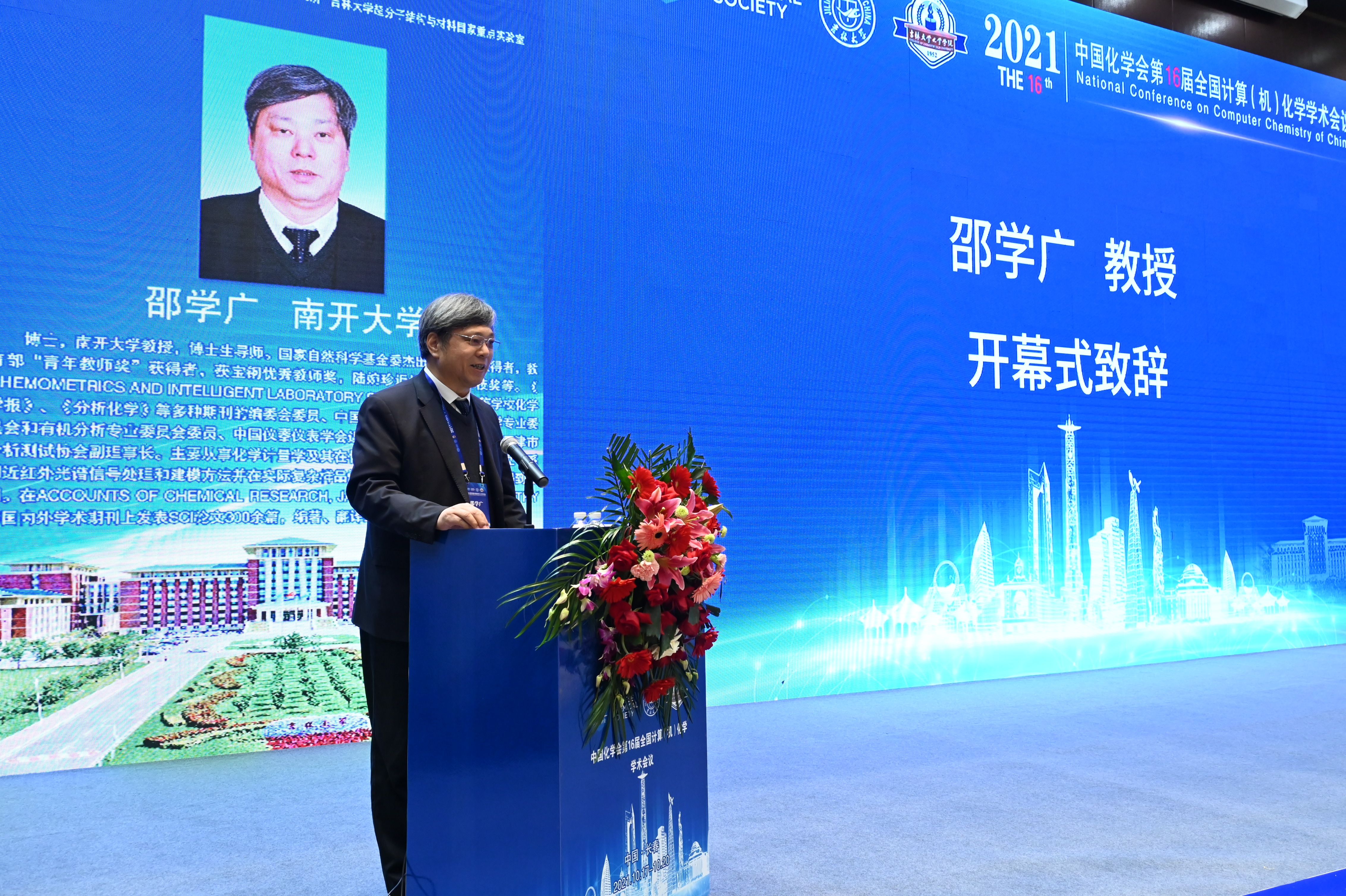 邵学广在致辞中代表专委会对组委会能够克服困难、高效应对疫情等各项突发情况并成功举办本次会议表示充分的肯定。他系统地回顾了全国计算(机)化学学术会议的发展历程以及对国内相关学科发展和交流的促进作用,对为历届会议做出重要贡献的同仁和承办单位表示由衷的感谢。他希望在国家促进社会发展全面转型、深入实施创新驱动发展战略的大背景下,理论与计算化学相关专业人才要继续坚持“四个面向”,瞄准前沿科学问题,促进交叉融合,推动学科快速发展。