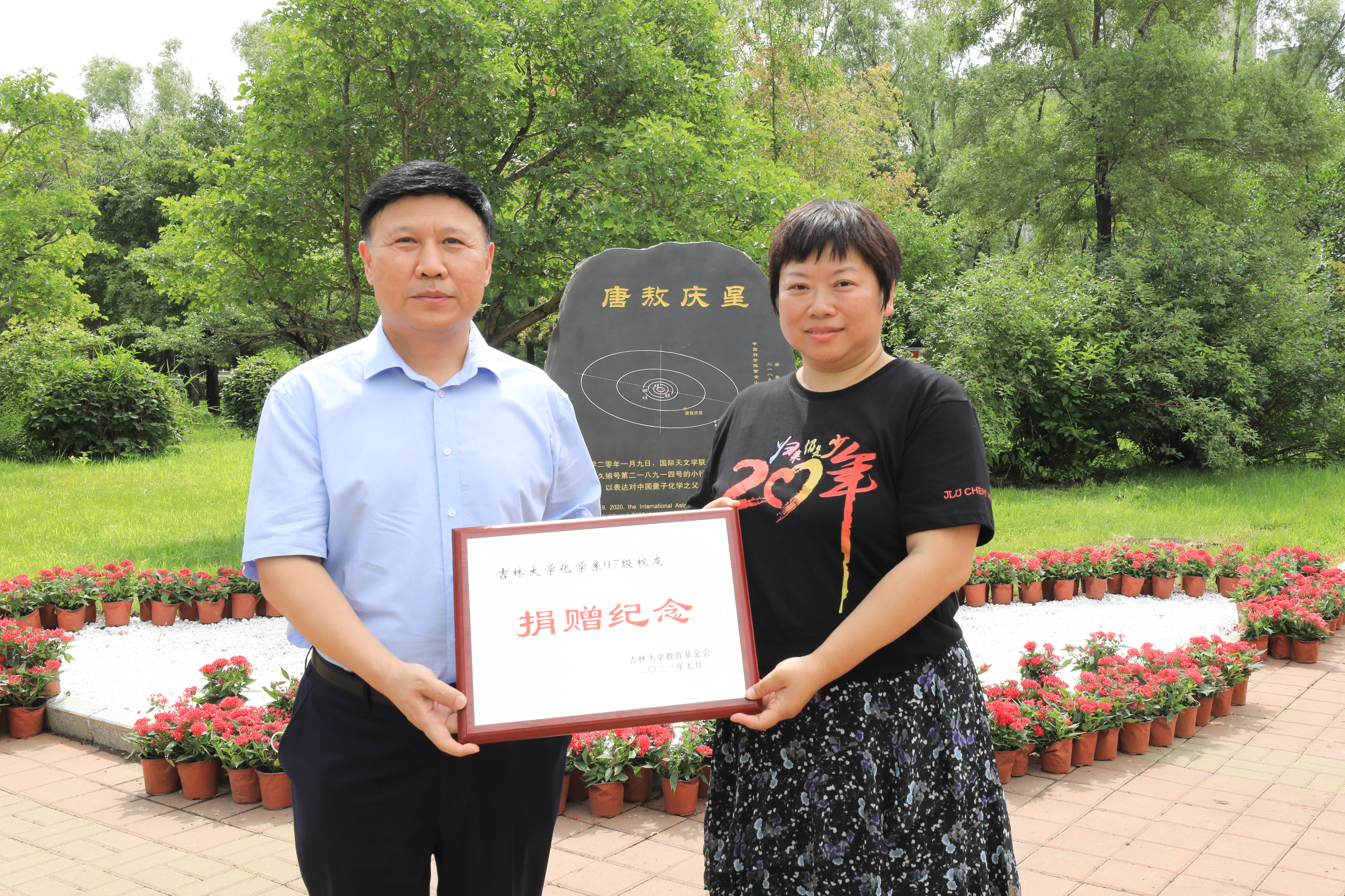 张希代表学校向捐赠“唐敖庆星纪念石”的第一会所