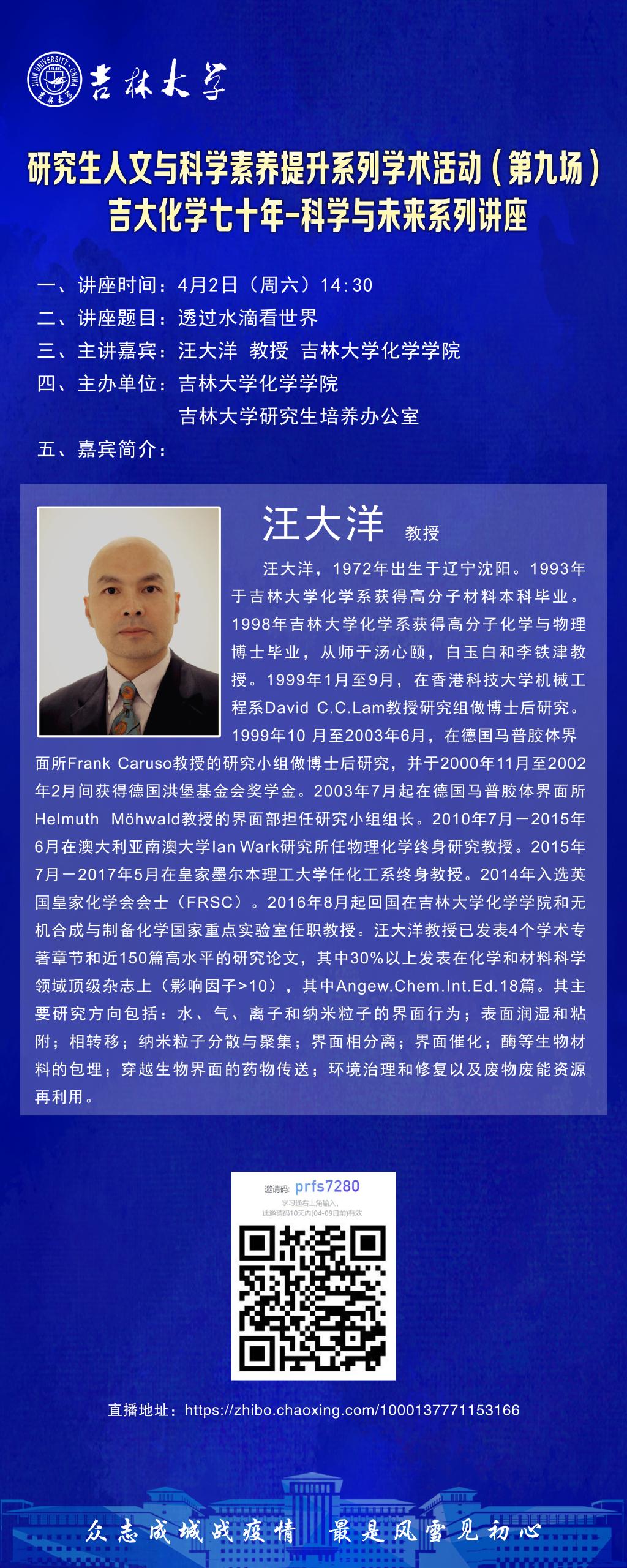 吉大化学70年院庆系列活动——科学与未来系列讲座:透过水滴看世界