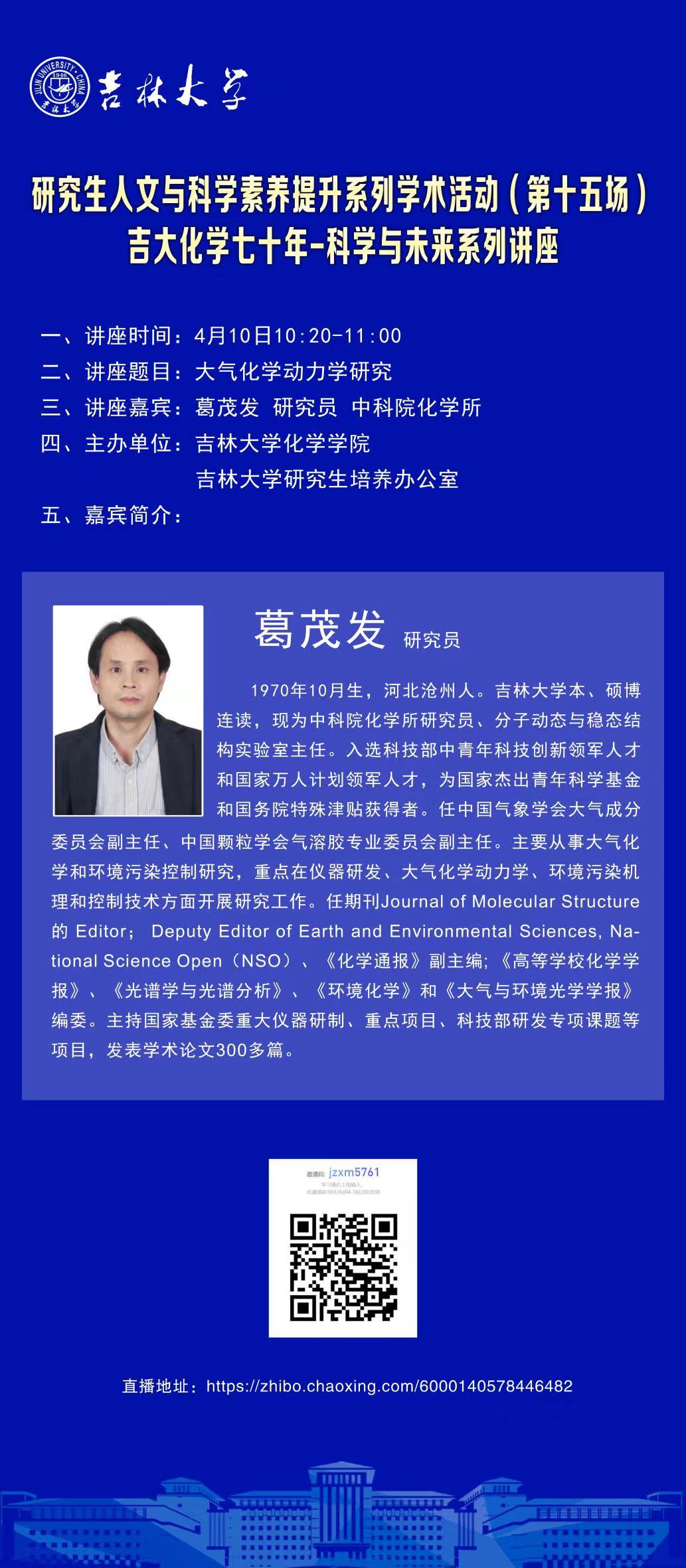 吉大化学70年院庆系列活动——科学与未来系列讲座:大气化学动力学研究