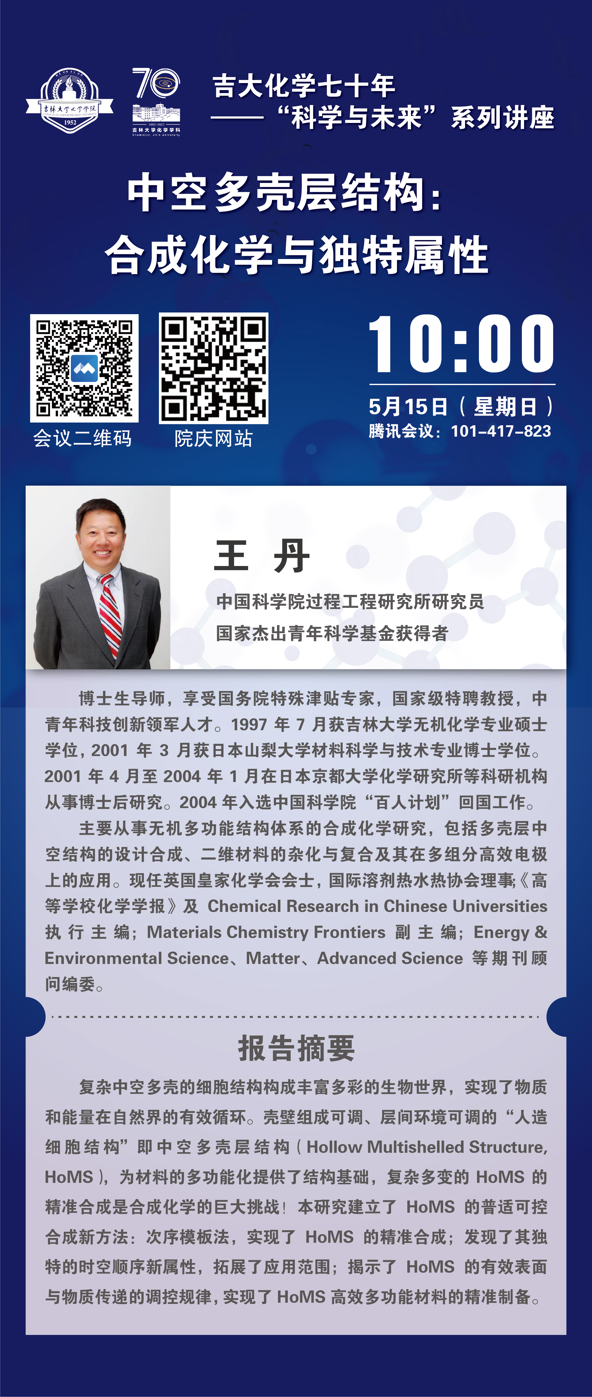 吉大化学70年院庆系列活动——科学与未来系列讲座:中空多壳层结构:合成化学与独特属性