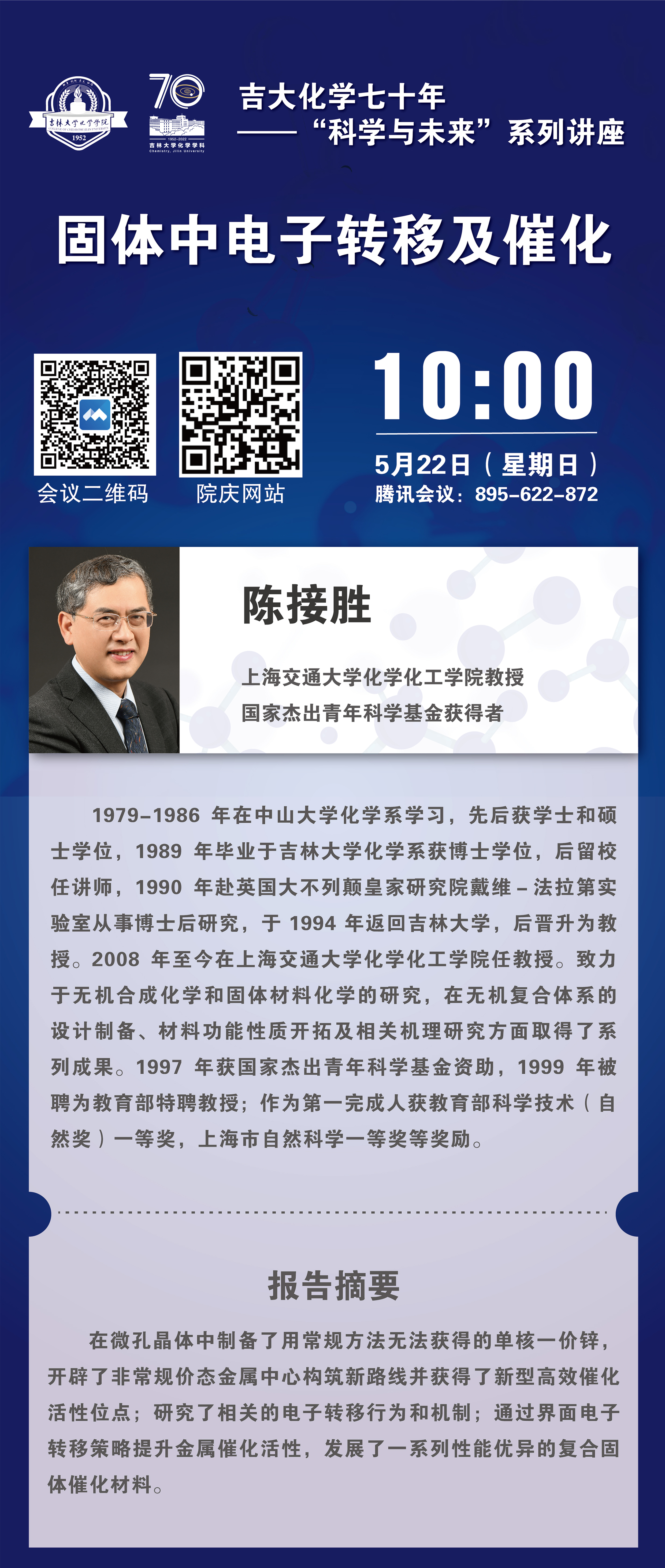 吉大化学70年院庆系列活动——科学与未来系列讲座:固体中电子转移及催化